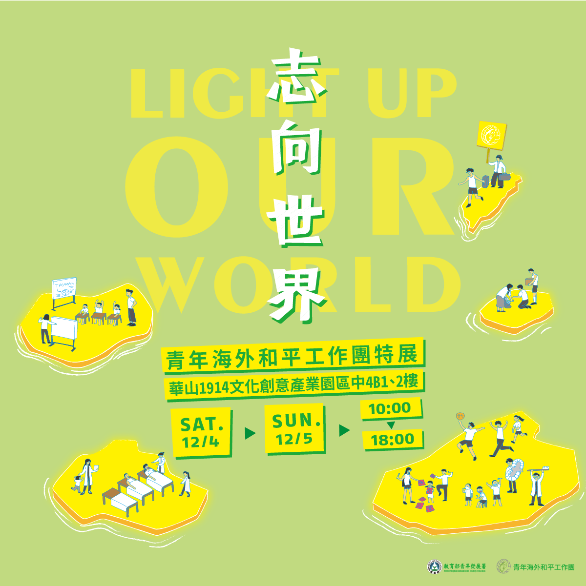 為呈現青年海外志工服務成果,擴散海外志工服務效益,教育部青年發展署以「志向世界」為主題,結合聯合國國際志工日,將於12月4日、5日在華山1914文化創意產業園區中4B館舉辦「志向世界—青年海外和平工作團特展」。