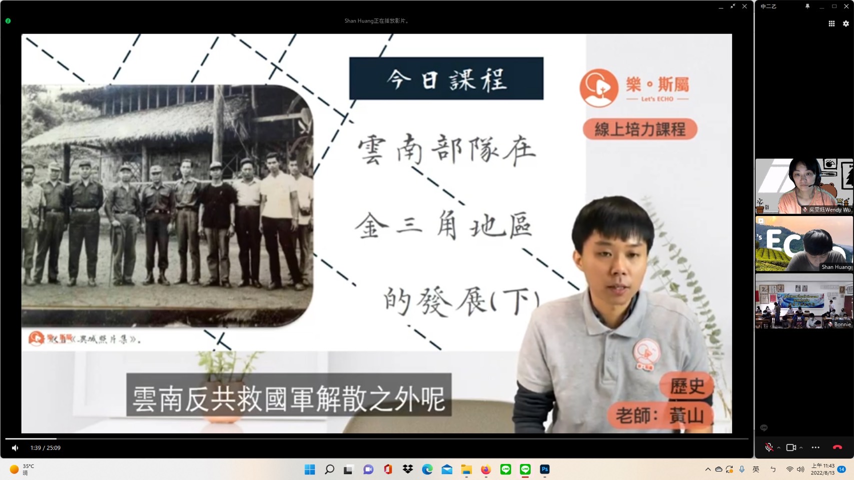 因應嚴重特殊傳染性肺炎疫情,教育部青年發展署自109年開始推動「青年海外志工增能及數位化服務計畫」,鼓勵青年運用所學專長與知能,提供其他國家數位化志工服務。其中參與計畫的社團法人台灣樂斯屬文史扎根育成協會團隊針對泰北國中生,錄製人文、歷史、生涯規劃、文化交流等主題的教學影片,並據此建置線上培力課程平臺,同步也以視訊方式與當地學生進行線上課程與交流。