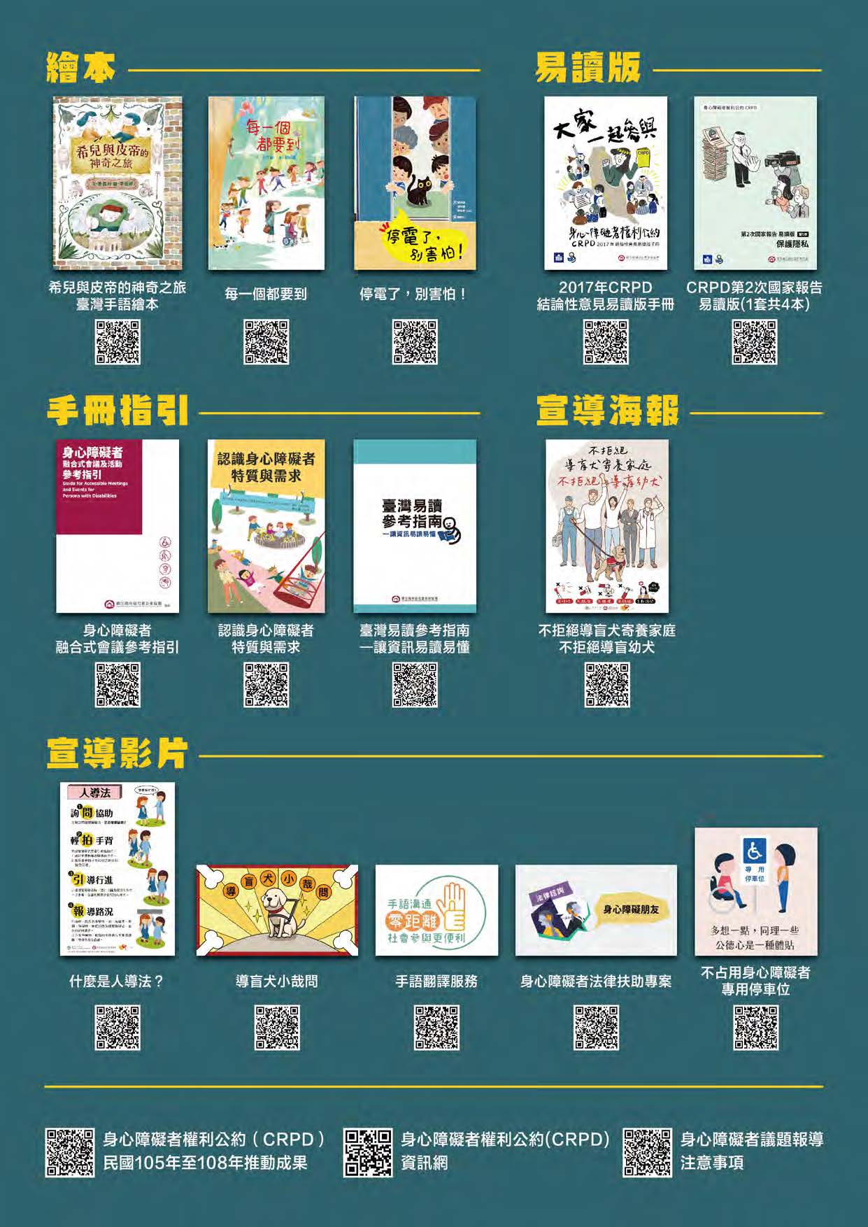 易讀出版品:易讀並非懶人包或繪本,而是指將複雜的資訊、艱深難懂的文字,轉譯成容易理解和閱讀的版本,並適時搭配圖片,輔助文字說明,詳見「CRPD資訊網易讀專區」(https://gov.tw/3gH),供心智障礙者及社會大眾獲取易讀資訊、促進資訊平權。