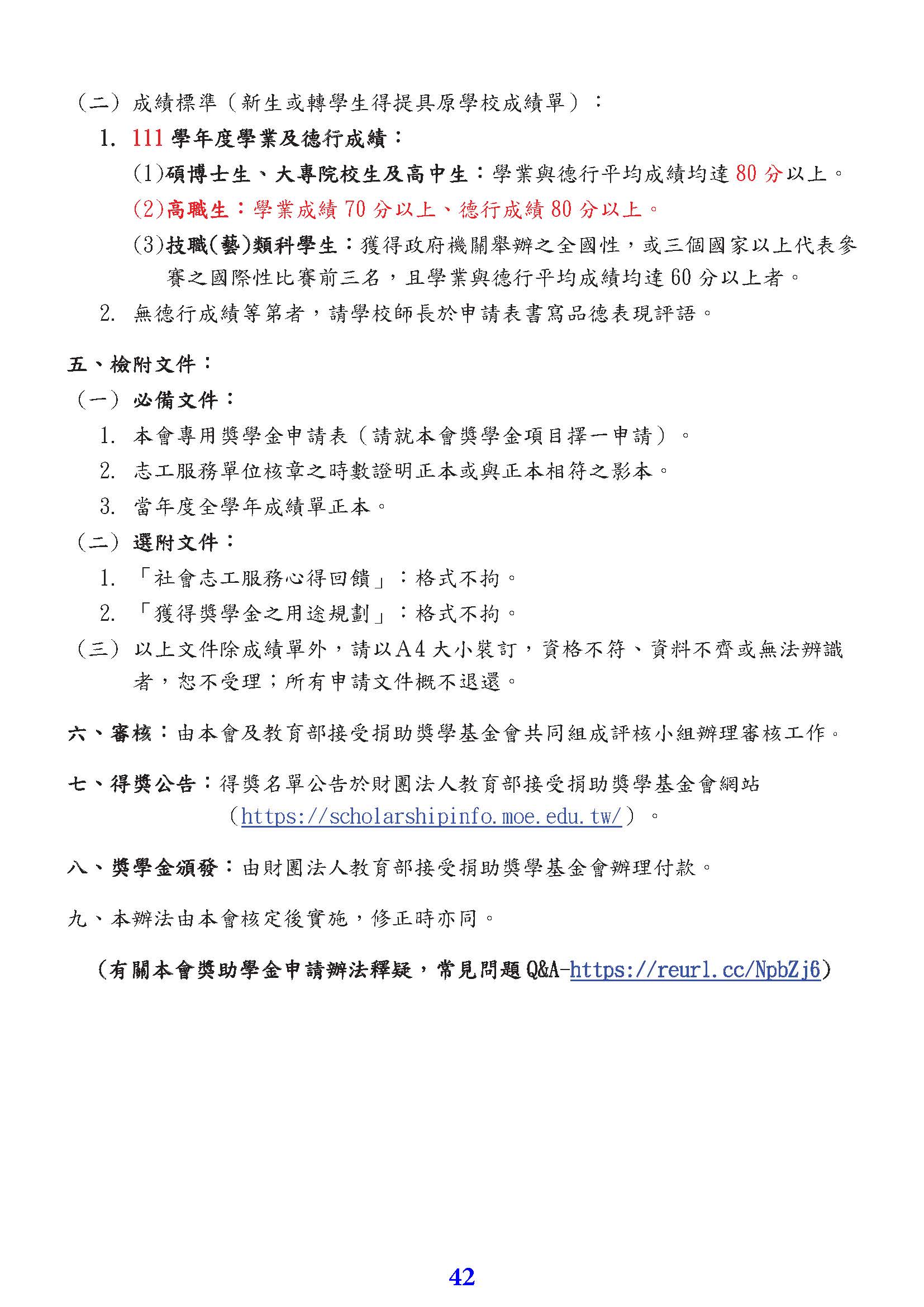 112學年度財團法人感恩社會福利基金會 未來主人翁學生公益活動獎助學金請辦法1