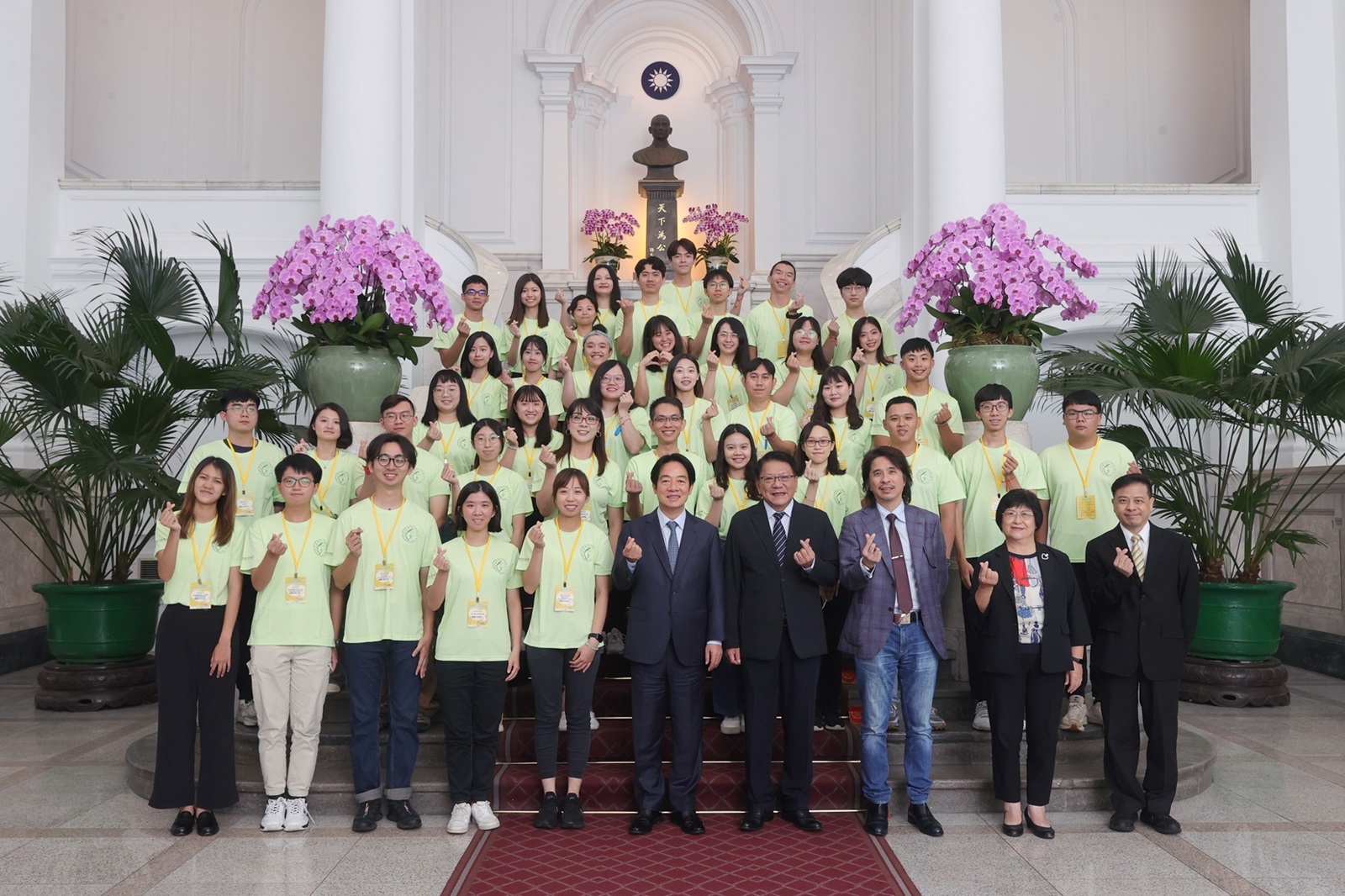 今年暑假,教育部青年發展署共補助80隊、884名青年志工前往18個國家進行服務,服務地區涵蓋亞洲、非洲以及歐洲等地區。為激勵這些即將前往國外服務的青年志工,由教育部葉丙成政務次長及青年發展署陳雪玉署長陪同78名大專校院及非營利組織青年海外志工代表,一同到總統府接受授旗,以鼓勵年輕朋友立足臺灣、移動全球,具備國際關懷。賴總統鼓勵年輕人應該要走出去增廣見聞、一圓夢想,讓生命能更豐富,也因此讓世界看見臺灣。
