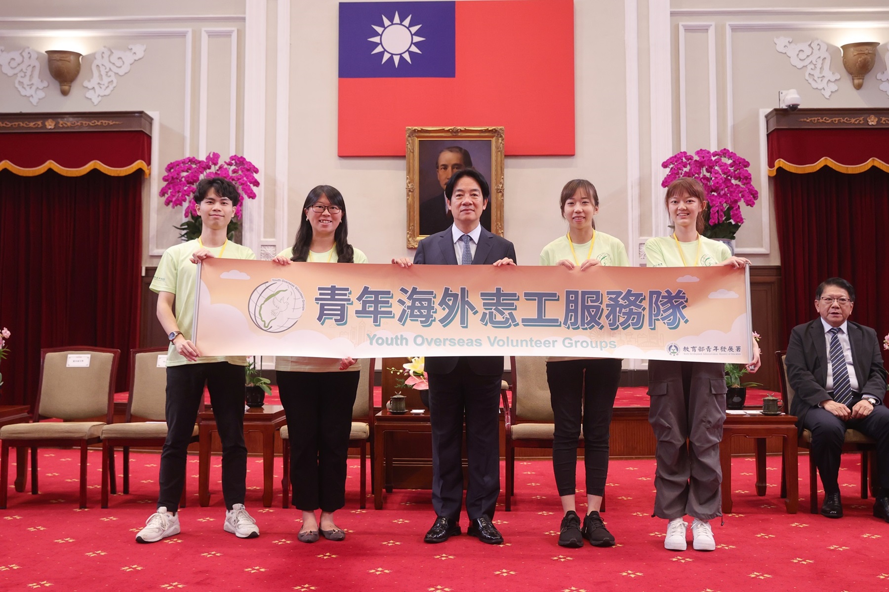 教育部青年發展署為激發青年實踐國際關懷精神,積極推動「補助辦理青年海外志工服務計畫」,每年補助18-35歲大專校院及非營利組織團隊青年赴海外進行志願服務。總統賴清德今(14)日接見「113年青年海外志工服務隊代表」並進行授旗,勉勵青年們發揮所學專長與知能,增進臺灣與海外各國交流,把臺灣的熱情與活力傳遞出去。