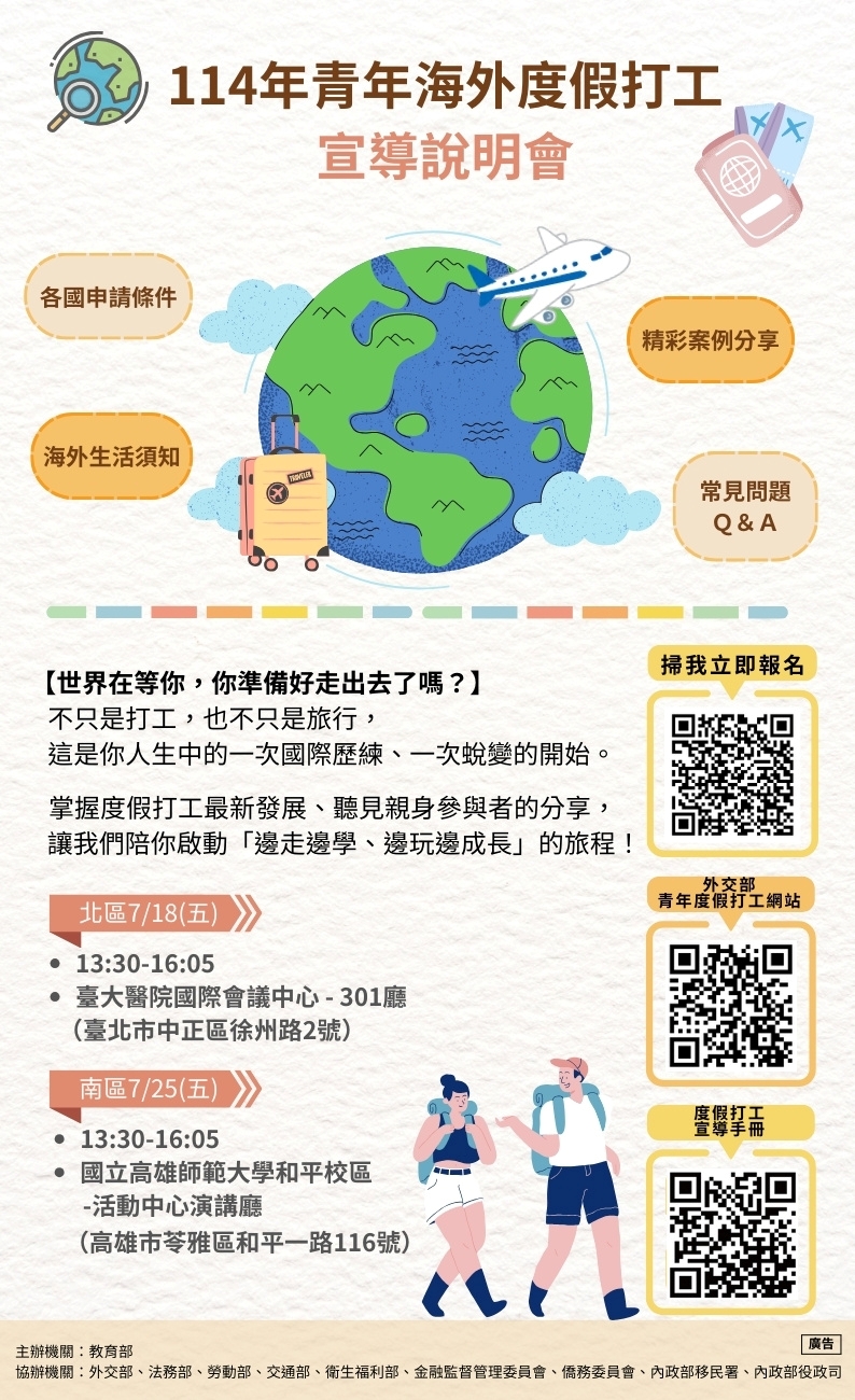 ★114年青年海外度假打工宣導會來了!