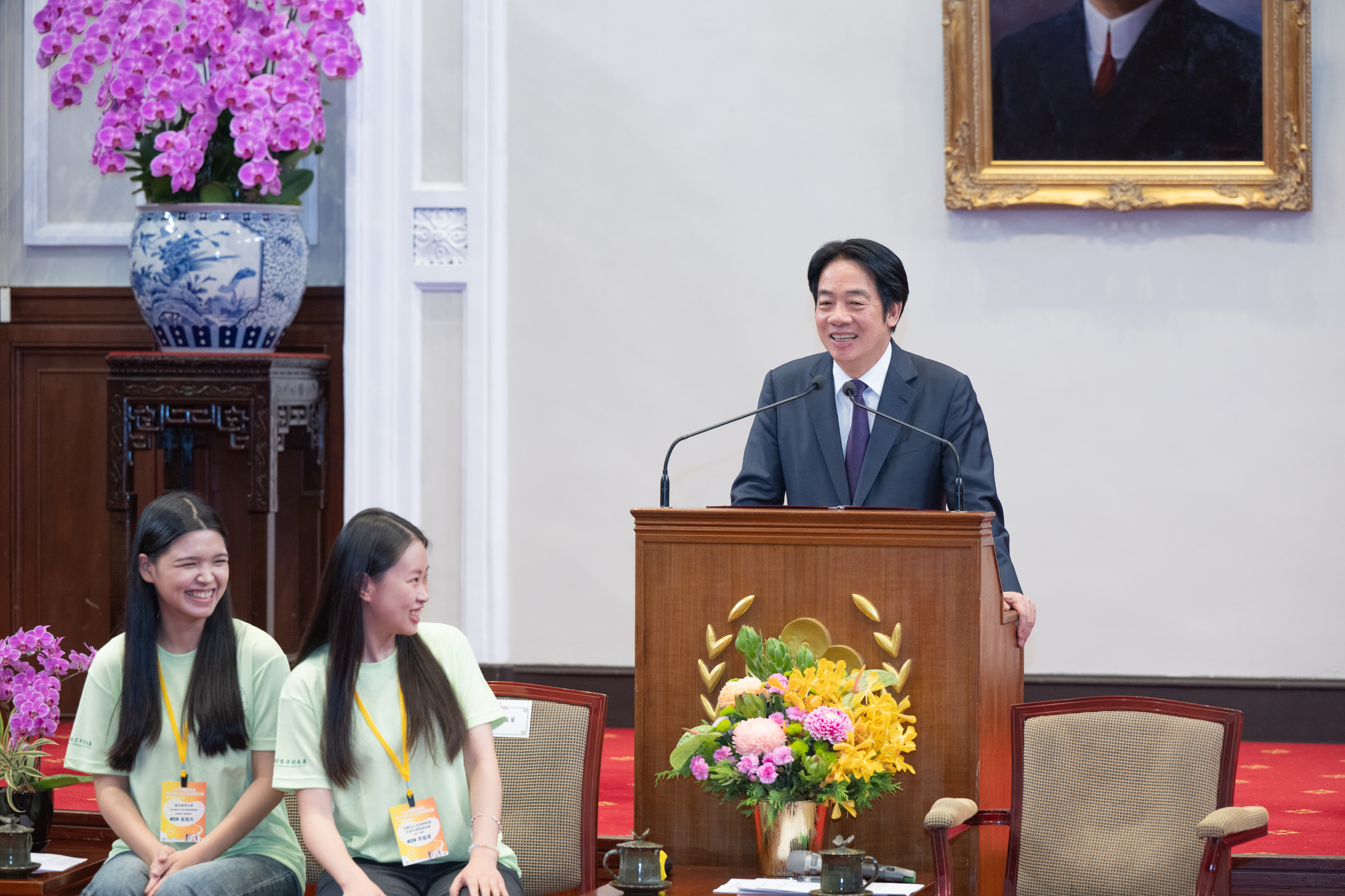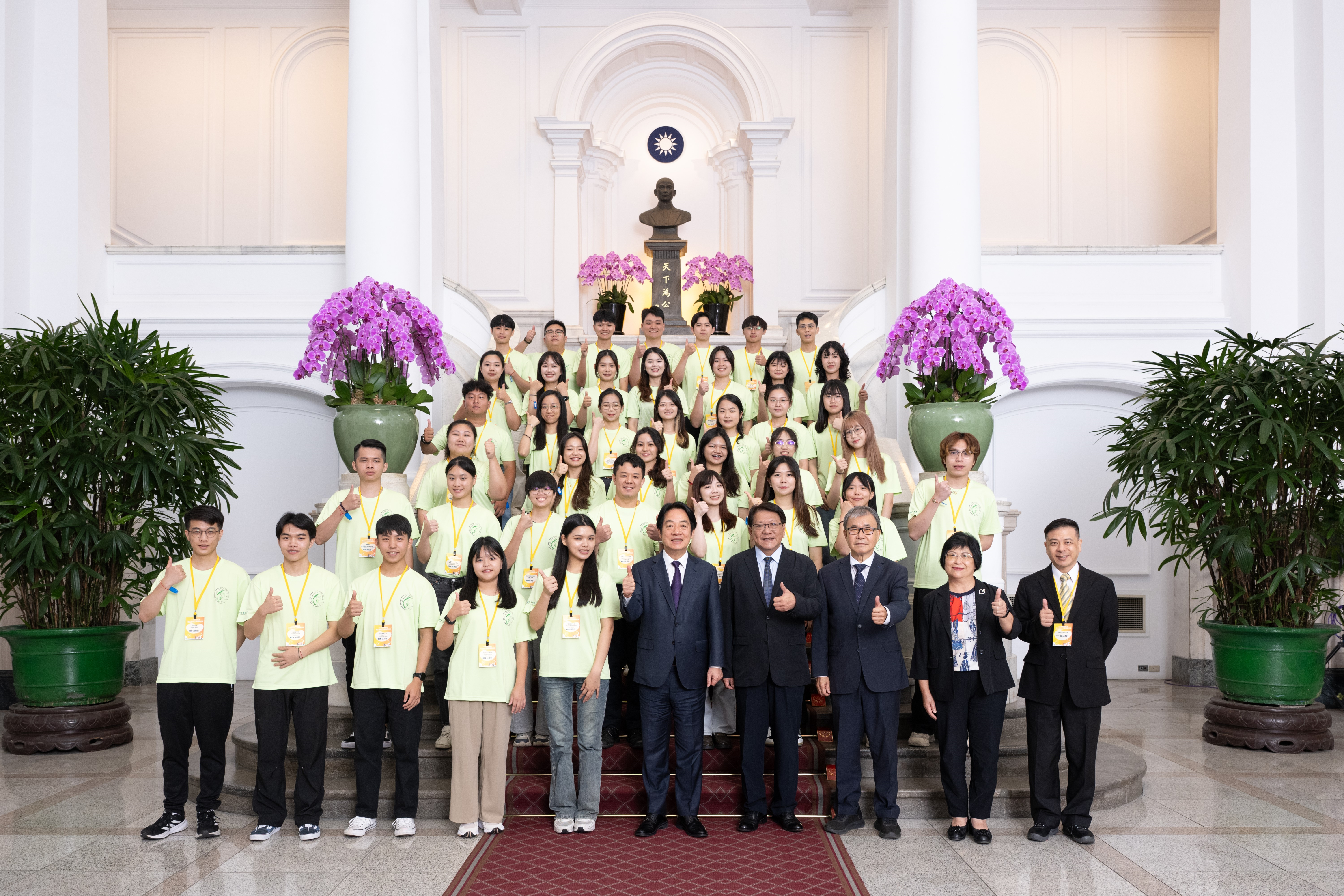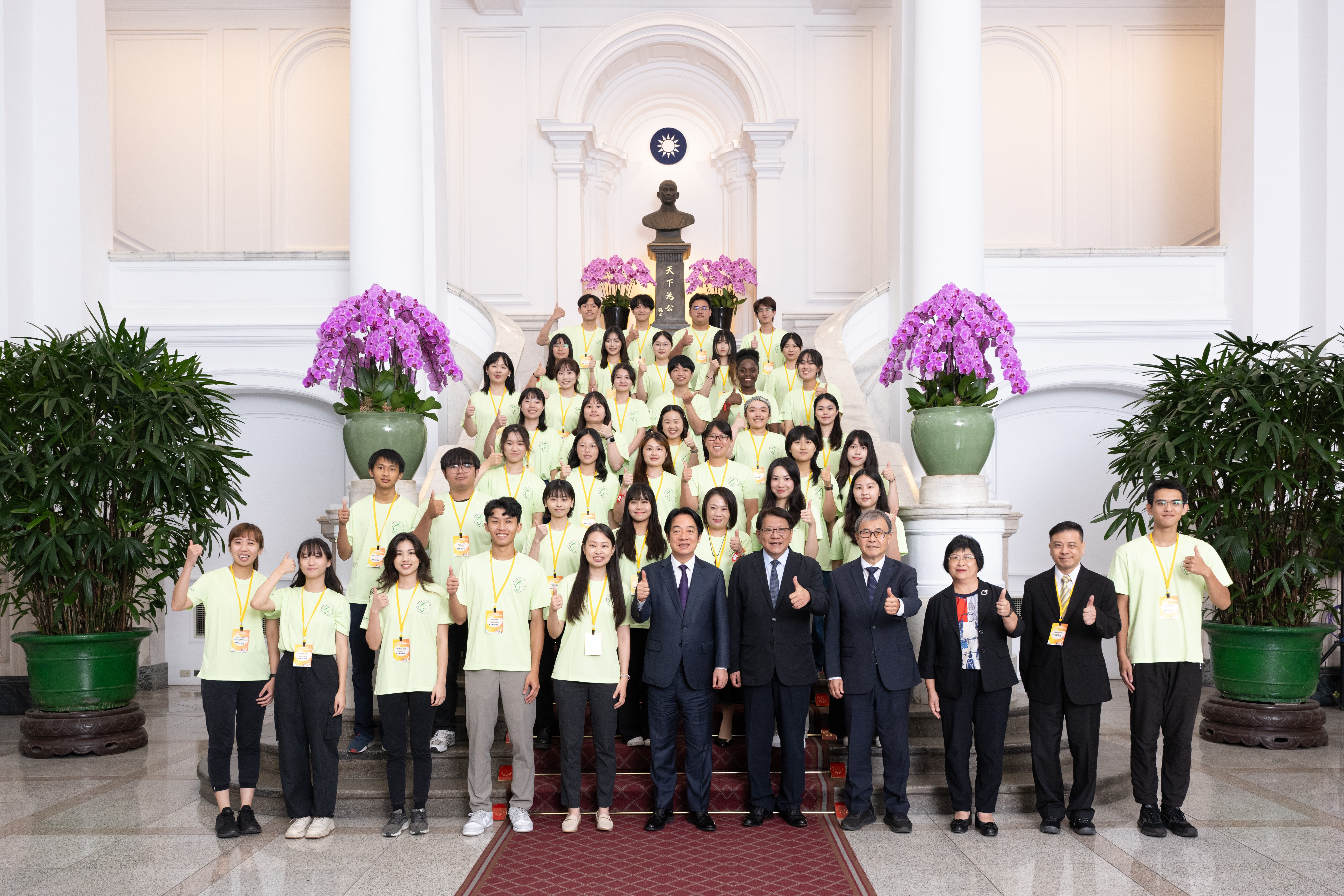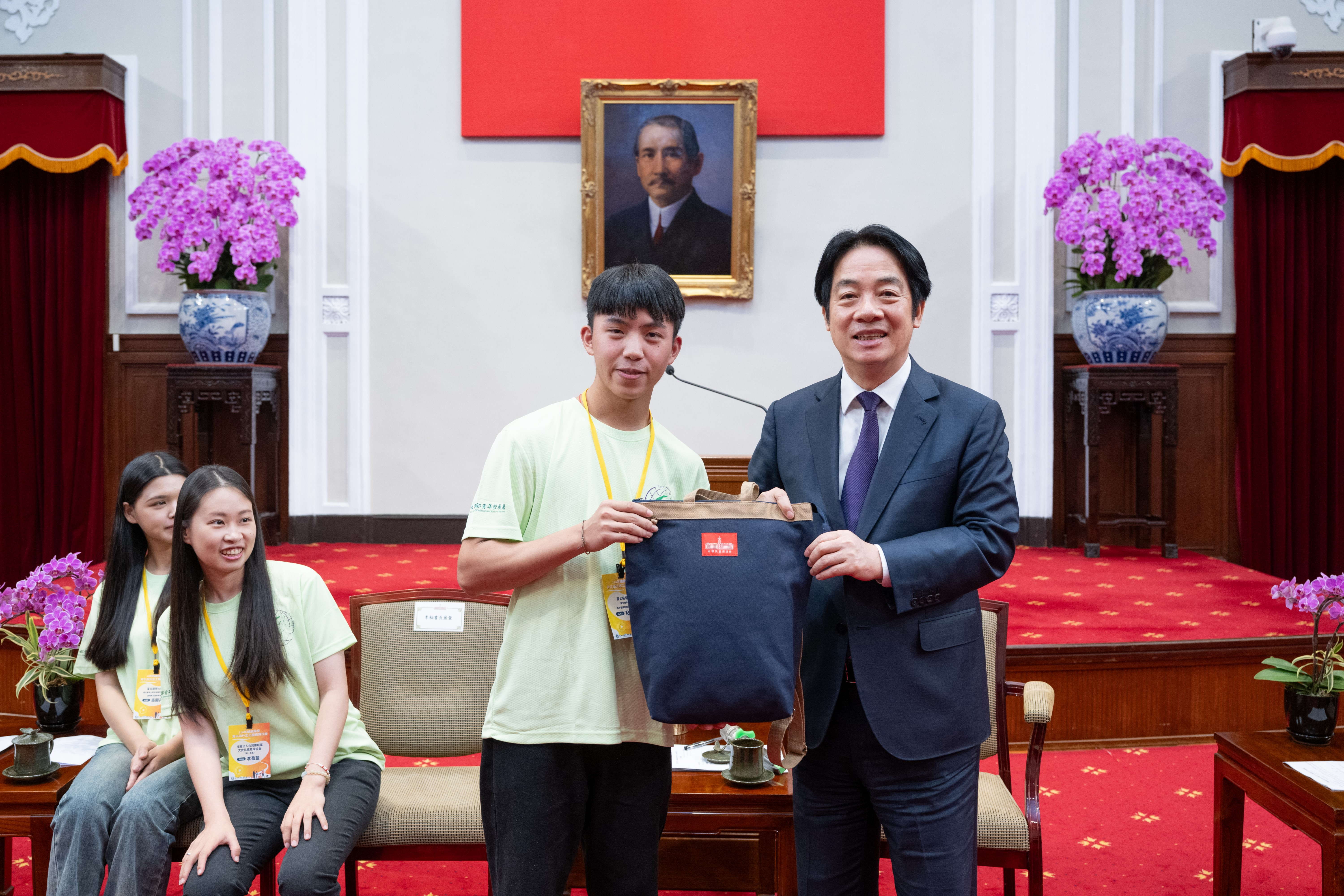 賴總統清德今日接見「青年海外志工服務隊代表」,並親自授旗,肯定青年海外志工服務隊用雙腳丈量世界,用熱血服務他人,以行動推動外交,讓世界看見台灣,充分展現行動力,是台灣最讚的代言人!