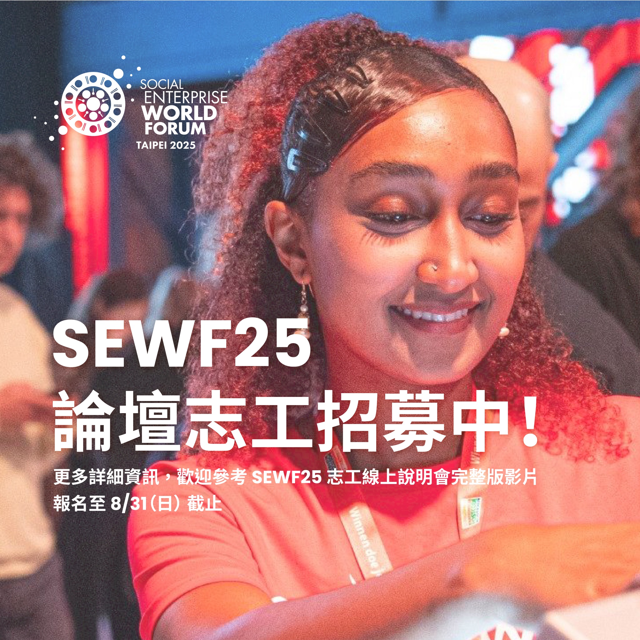 台灣好室有限公司辦理『2025年社會企業世界論壇(SEWF25)』志工招募,詳細如下: