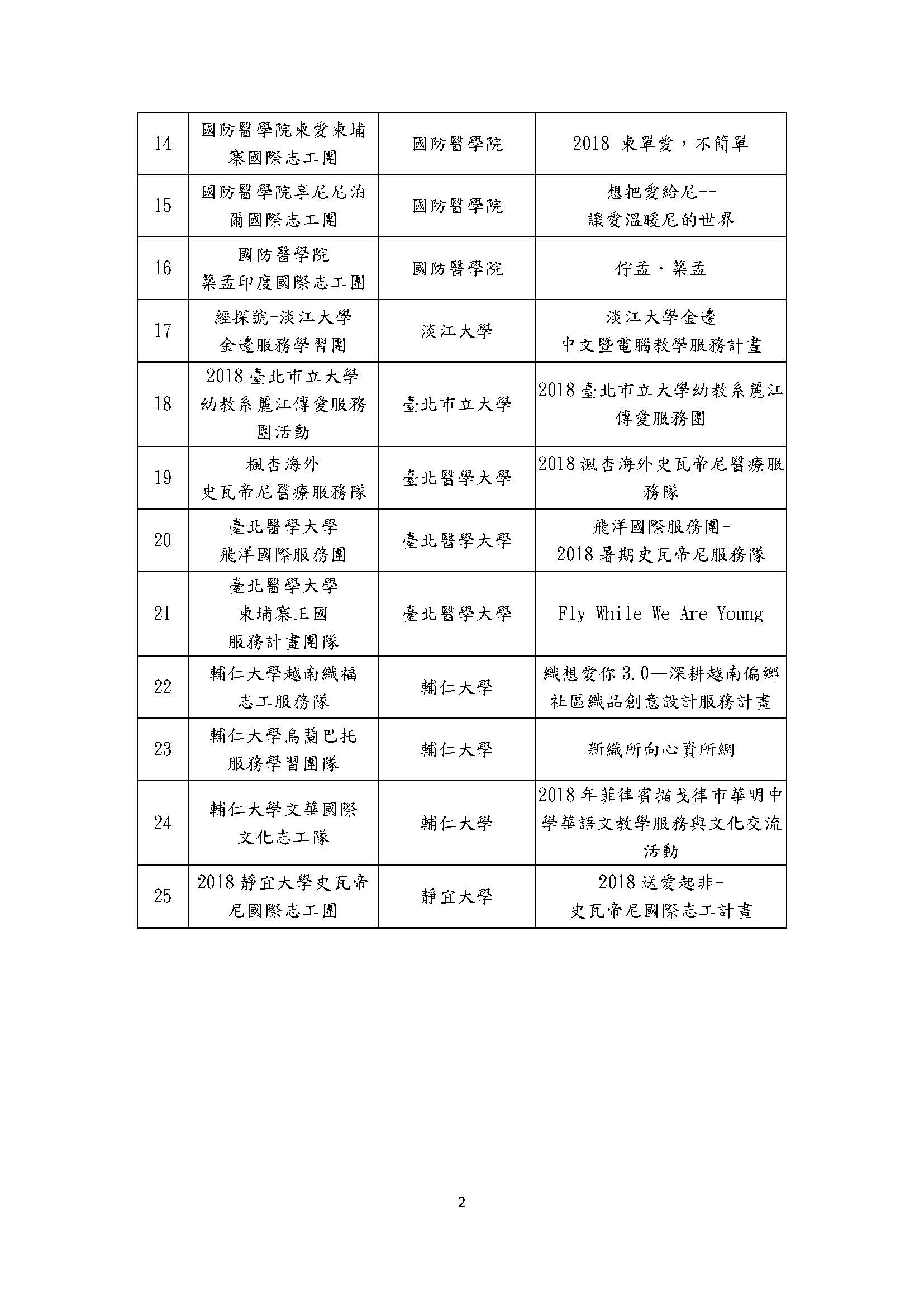 107年青年海外和平工作團隊競賽初選結果公告名單2