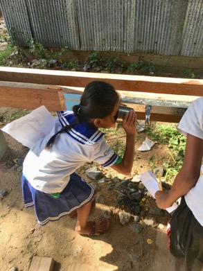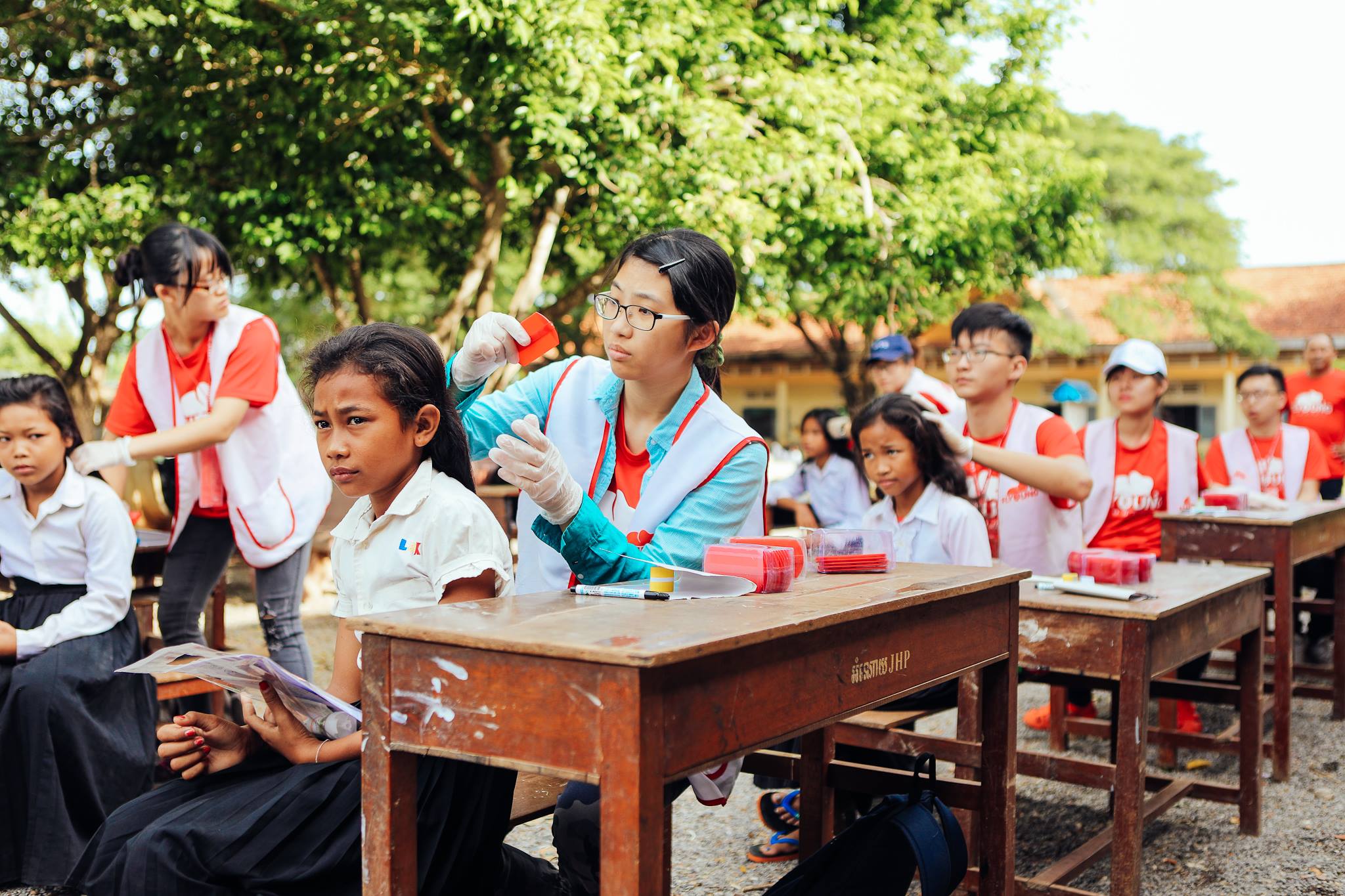 ▲為了能夠評估寄生蟲防治計畫的成效,團隊到柬埔寨為學童進行頭蝨 感染率的調查。
