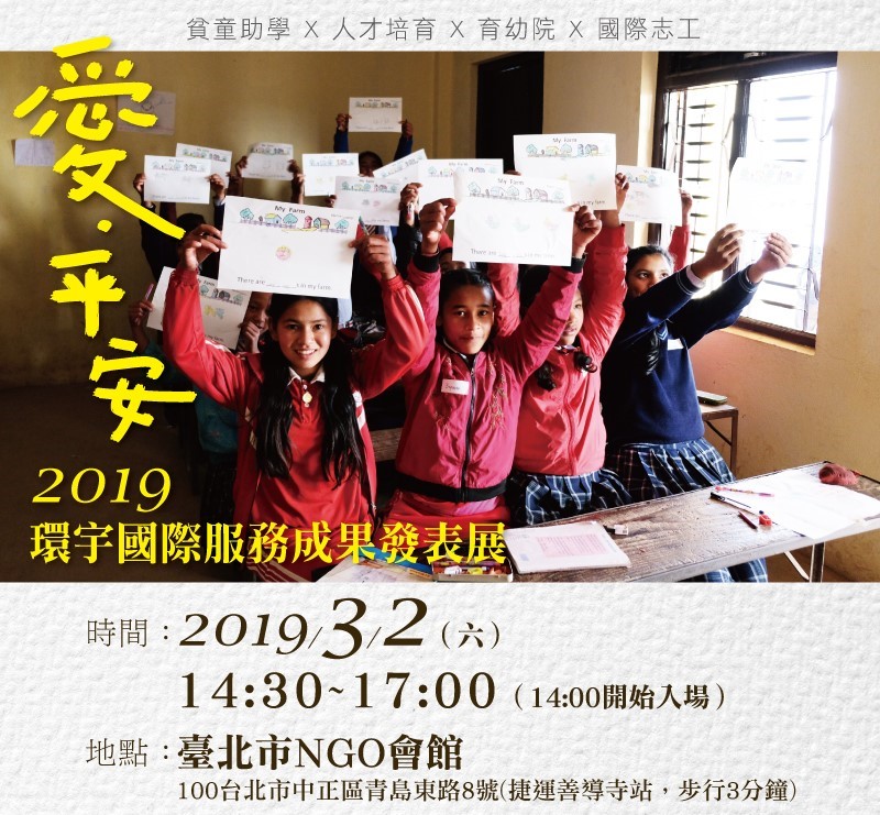 活動免費參加,報名連結:https://goo.gl/forms/ZP5zCS4GX3EWv2892詳細活動內容請洽財團法人環宇國際文教基金會FB粉絲專頁:https://www.facebook.com/events/377688239727377/02-2366-0743 #232 國際服務處