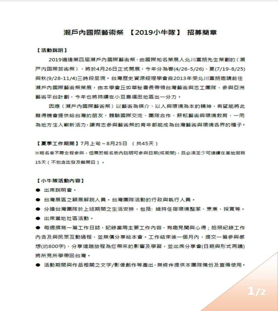 第四屆瀨戶內國際藝術祭 2019小牛隊報名簡章1