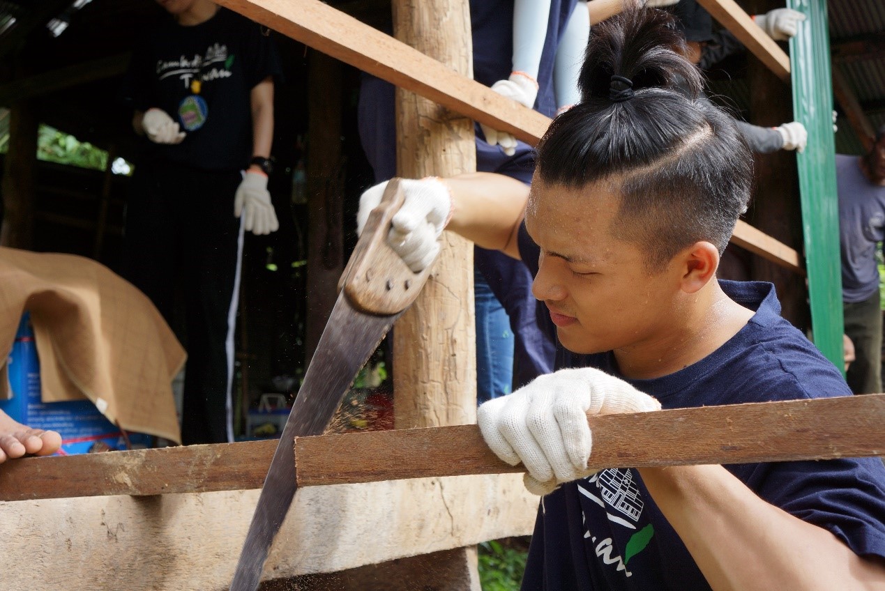 亞洲大學社會工作學系國際志工隊至柬埔寨進行「美學創意啟蒙課程」,結合色彩學遊戲及實際的教室空間彩繪自己的夢想。團員發現,多數孩子們都畫了房子,原來是因為他們的父母親多出外工作,賺來的錢都用來買食物,沒有多餘的錢修建房子,所以他們都想要有一個能夠遮風避雨的家。為了幫居民打造夢想中的家,團隊還到暹粒一戶弱勢長者的家屋進行修繕工作,將殘破的草編牆改為鐵皮牆面,讓這家人不再受到寒風刺骨或淋雨的痛苦。