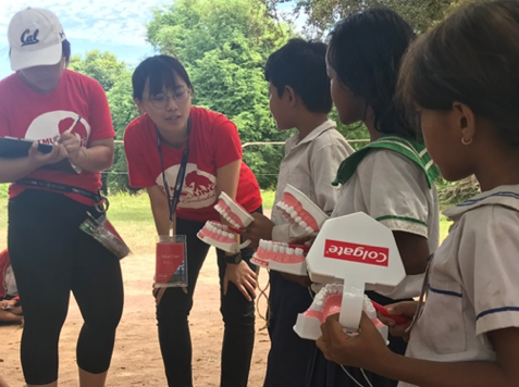 「臺北醫學大學飛洋國際服務隊」在105年首度至柬埔寨進行需求訪查,發現當地衛生觀念並不普及,且醫療資源相對匱乏,經評估後,與柬埔寨臺灣教育中心合作,現在每逢寒暑假期,就會到當地暹粒省的偏鄉村落,提供口腔衛教、寄生蟲篩檢、身體健康檢查及疾病認識等課程項目,並以「Train The Trainer」的服務方式,透過教育傳授衛教知識,並向當地教師示範教學方式,甚至將團隊教材道具留在當地,希望將服務向下扎根,讓當地逐漸長出改變的力量。隊長逄芯品感動地說:「結束服務後,偶然在臉書看到當地老師用我們當初留下來的教材和海報,在網路上進行直播分享,宣導衛教觀念,那一刻,我知道服務的力量正改變著他們!」;同時,團隊也與學校分子寄生蟲暨熱帶疾病學科合作,至瑪德旺省的偏鄉小學調查腸道寄生蟲和頭蝨感染情形,希望透過每次嚴謹的科學方法進行篩檢防治,深入瞭解當地的感染情形,修正服務方案,有效降低虱蟲感染的盛行。