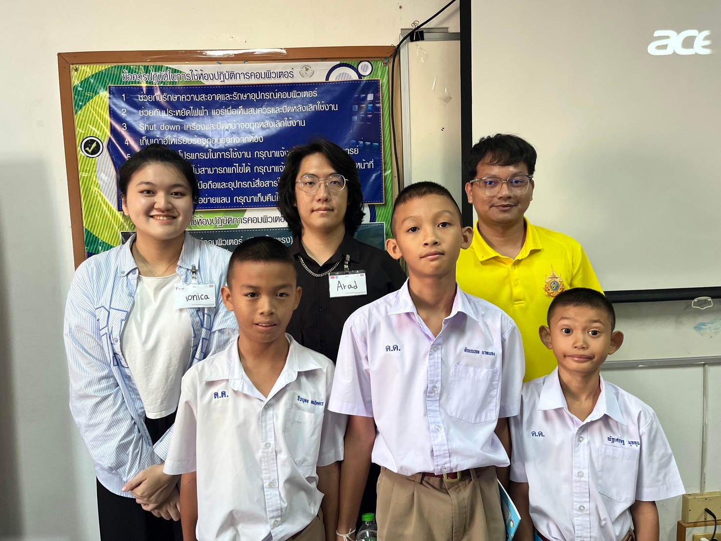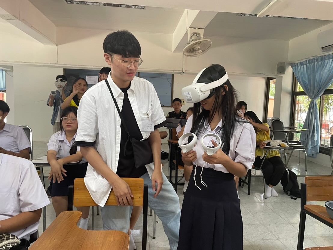 在這次泰國孔敬的志工服務過程中,有許多令人難忘的時刻和故事,而其中一些特別的瞬間透過照片記錄了下來,成為我們回憶的珍貴片段。第一張照片捕捉了當地小學生首次體驗VR(虛擬實境)頭盔的瞬間。當我站在一旁觀察時,看著這些孩子們對VR充滿好奇和期待 的樣子,我心裡充滿了喜悅。雖然他們戴著頭盔,但他們的興奮完全無法隱藏。我能清晰地感受到他們的笑聲和驚嘆。這些學生從未接觸過這樣先進的科技設備,當他們進入虛擬世界後,驚訝和興奮的表情瞬間浮現,他們伸出雙手試圖觸碰眼前的虛擬物體,甚至有些孩子會喊出「哇!」的聲音。看到這些孩子對新科技的熱情,我也不禁感到欣慰,覺得我們這次的志工服務不僅僅是在傳授知識,更是在激發他們對未來科技的興趣與探索慾望。第二張照片則記錄了我們與高中生互動的片段。這一幕發生在我們指導他們如何在VR環境中繪製邊界範圍的過程中。VR技術不僅需要用戶理解虛擬空間的概念,還需要他們掌握一些基本操作。我和團隊成員一邊向學生們講解,一邊手把手指導他們如何使用VR控制器,在虛擬空間中畫出活動範圍的邊界。儘管一開始有些學生對於操作感到困惑,但在我們的耐心指導下,他們很快就掌握了訣竅,並開始自如地在虛擬世界中探索。有一位高中生特別引起了我的注意,他一開始顯得有些膽怯,不敢嘗試,但在同學的鼓勵下,他終於勇敢戴上了頭盔,並且逐漸開始享受這一切。看著他從拘謹到自在的轉變,這讓我感受到教學不僅是技術上的傳授,更是一種心理上的引導。最後一張照片是當活動結束後,我們與泰國亞洲人文學院(College of Asian Scholars)校長的自拍合影。那天,我作為團隊的攝影師,負責掌鏡,紀錄下這個珍貴的時刻。這是一張充滿歡笑與成就感的照片,大家的臉上都掛著微笑,特別是當校長表示對我們的服務感到滿意和感謝時,整個團隊的疲憊似乎都在那一刻消散了。我作為這次志工服務的一員,能夠參與這樣有意義的活動,不僅幫助了當地學生,也讓我在文化交流中獲得了豐富的經驗與成長。這三張照片構成了這次志工服務中我難以忘懷的回憶。每一張照片背後都有著一段故事,這些故事不僅見證了我們的努力與付出,也讓我更加明白,科技不僅是冰冷的工具,更是連接世界、縮短距離的橋樑。這次的服務經歷不僅讓當地學生有了新的體驗,也讓我收穫了滿滿的感動與啟發。[ 詳全文 ][ 收起 ]