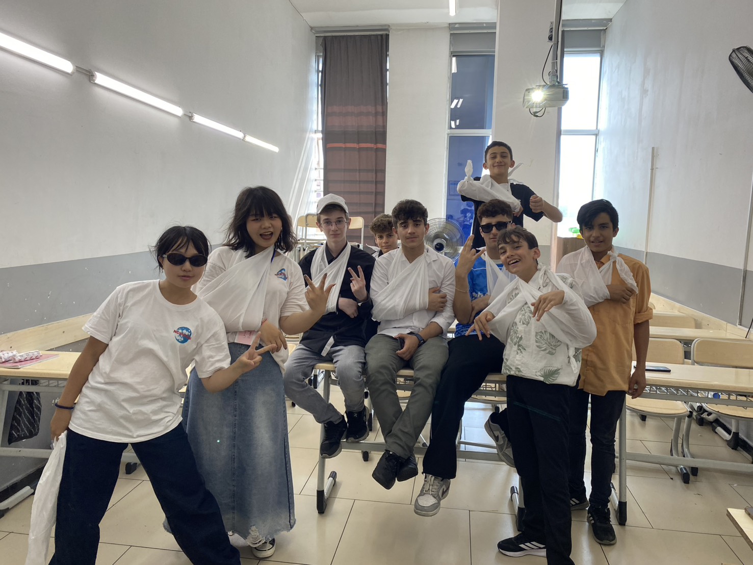 衛教課程的包紮跑關,男生們紛紛表示太簡單了