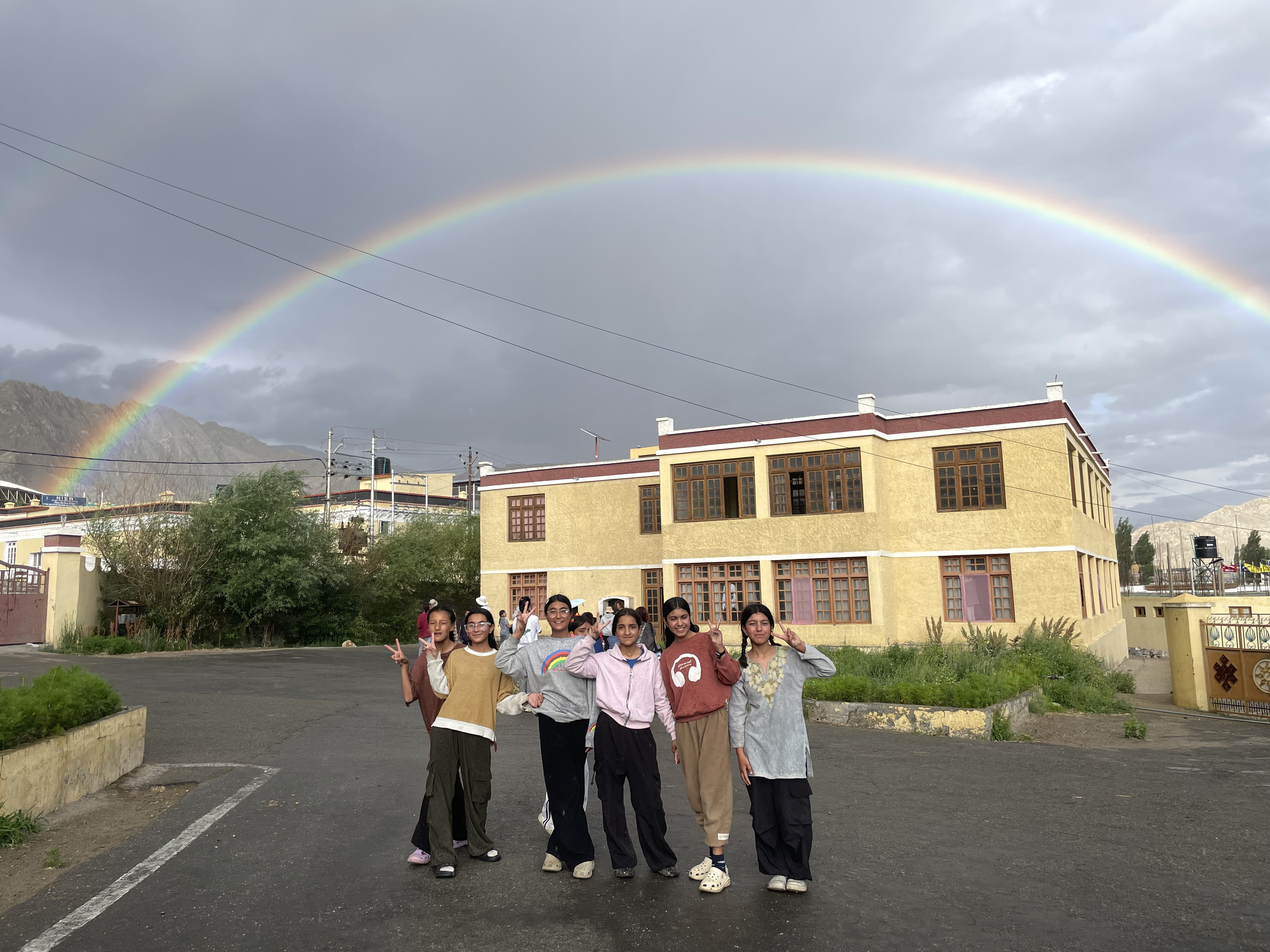 (您的瀏覽器不支援JavaScript語法),全文為:一探這份鮮少被網路記載的文化故事,拉達克的旅程,便在這份悸動中悄然展開。未待我適應海拔 3500 公尺對於視覺與生理的衝擊,我們已乘坐上黃色校車,一路向 Jamyang School 駛去,帶著懞懂與熱情奔向我們在拉達克的家,一個充滿愛與生機的地方。初抵校園時,由於假日的緣故,在校園裡活動的學生並不多。然而,那天我認識了第一個主動與我交談的女孩 — Stanzin,他正獨自帶著幾位一二年級的小朋友一同玩耍,這是我第一次對「大手拉小手」有了實感,在我們的交談中,他替我取了一個拉達克語名字 — Mentok,代表「花」的意思。也許是因為我的英文名字Joanne對他們來說比較難發音,也許是因為當地的名字更有親切感,在此後的日子裡,我的朋友們都以這個名字稱呼我,而 Mentok 這個名字也陪我走過了拉達克的旅途。隨著在 Jamyang School 的時間一天天累積,我也與學校的孩子們越來越熟悉,從原本難以記得每個人的名字,到後來已經能辨識出當地常見的名字—Dolma, Lamo, Stanzin, Jigmet。我也開始漸漸與幾位女孩熟識,後續的日子裡,每天課程結束後,總會有一群熟悉的身影從遠處奔來,大聲的呼喊著我的名字,張開雙臂,送上最熱烈的擁抱與最真誠的笑容。我們互相分享著一天生活中的點滴,即使年僅三四年級的他們英文不算流利,但仍努力互相幫助、拼湊出想表達的意思,並搭配著比手畫腳,我們每天都這樣交流著,我想,即使我們未必完全理解對方說的話,但透過表情、手勢與語氣,我們依然能感受到彼此發自內心的快樂與愛,是無須翻譯便能心領神會的。除了每日分享生活外,有時他們會拉著我帶我到遊樂場裡吊單槓、溜滑梯,有時我們一起在校園裡玩起捉迷藏,他們也會帶著我到新校舍的空地上,教我唱拉達克的歌曲,跳當地的舞蹈,我們便圍成圈,一起在湛藍的天空下載歌載舞,享受著歡快的氣氛與美妙的時光。那一刻,一切煩惱與疲憊都彷彿隨風而去,留下一顆純粹而喜悅的心。在拉達克的生活,也讓我重新認識了「快樂」的模樣,原來,幸福可以如此簡單。校園中有幾棵蘋果樹,大小僅櫻桃般的青綠色小蘋果結滿整棵樹,放學後的時光,小朋友們會拿著樹枝丟向蘋果樹,待幾顆果實掉落,便可好好享用,他們也會興奮地拿著小蘋果與我分享,再帶上幾顆從家鄉寄來的杏桃,我們一同坐在階梯上,一人一顆杏桃一顆小蘋果,邊吃邊聊,在吃完杏桃果肉後,便可拿起石頭敲打著杏桃果核,果核碎裂後,留下杏仁般的小堅果等著我們享用,第一次看到這樣吃杏桃的方式時,我驚喜不已,也因此愛上了這個內外皆有驚喜的水果,我們一邊吃著,一邊開懷大笑,享受著大自然最純粹的美味,整顆杏桃從果肉到果核,毫無浪費,幸福也在此刻達到頂點。三個禮拜的拉達克旅程或許不算長,但它卻教會了我最純粹卻深刻的愛—關愛身邊的每個人,無私地互相幫助;熱愛自己擁有的生活,隨遇而安地面對一切。 離開時,天空依舊萬里無雲,五彩的風馬旗在巷弄間隨風飄動,遠方的褐色山岳仍覆著些許白雪,一切看似未曾改變,但我知道,真正改變的,是我的心,拉達克在我心中已烙下了深刻的記憶—女孩熱情地奔跑、男孩靦腆羞澀的笑容、眾人圍成圈跳舞的自在模樣、圍繞在豔陽旁的圓形彩虹、寂靜夜空下的繁星點點......這些點滴將永遠存於心底,當生活與課業的壓力再度席捲而來時,我仍會想起那三週純粹快樂的日子,重新拾回那份最初的感動與力量。