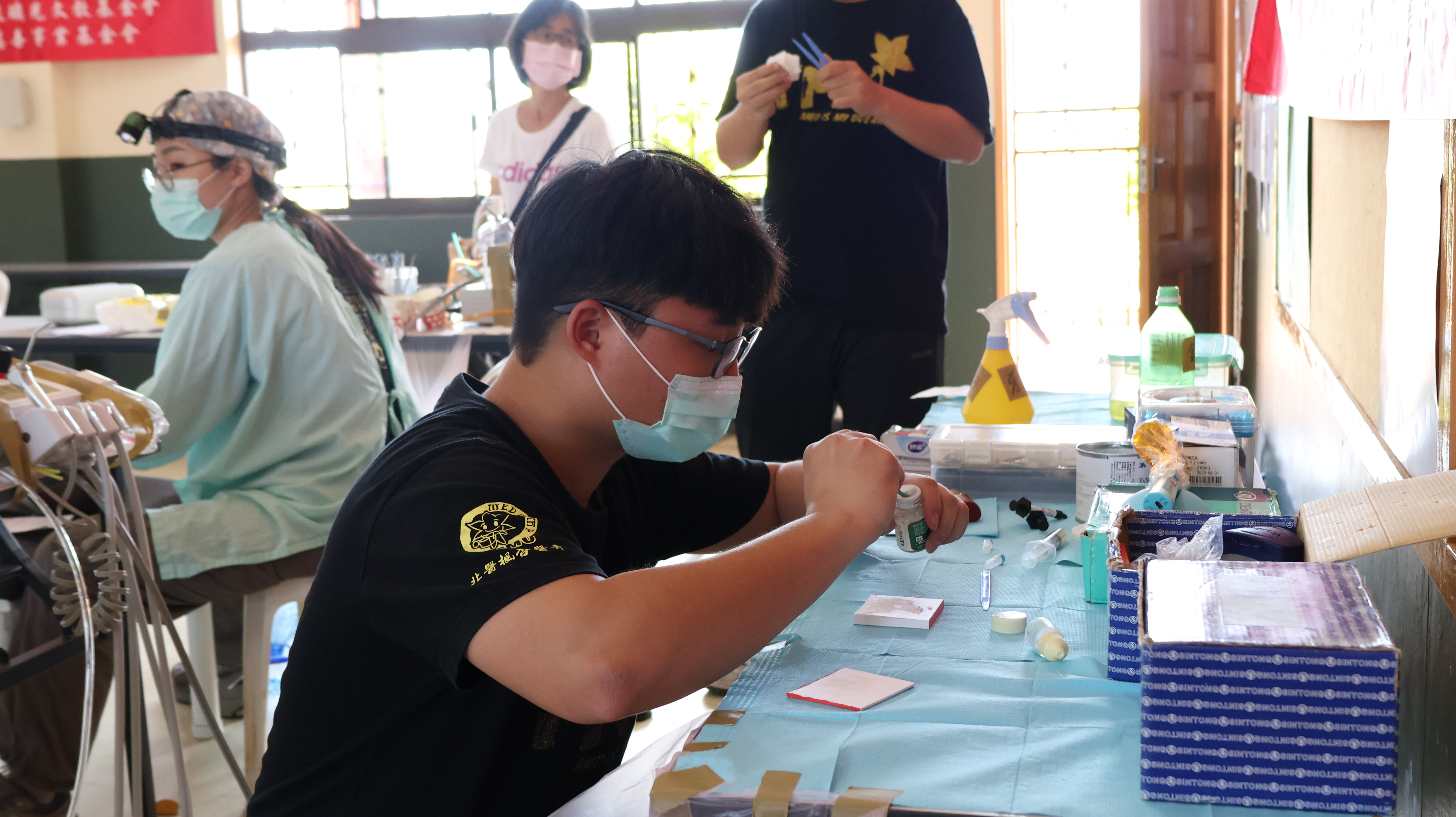 隊員鄒育軒,義診時協助牙醫師準備治療材料。(圖1)