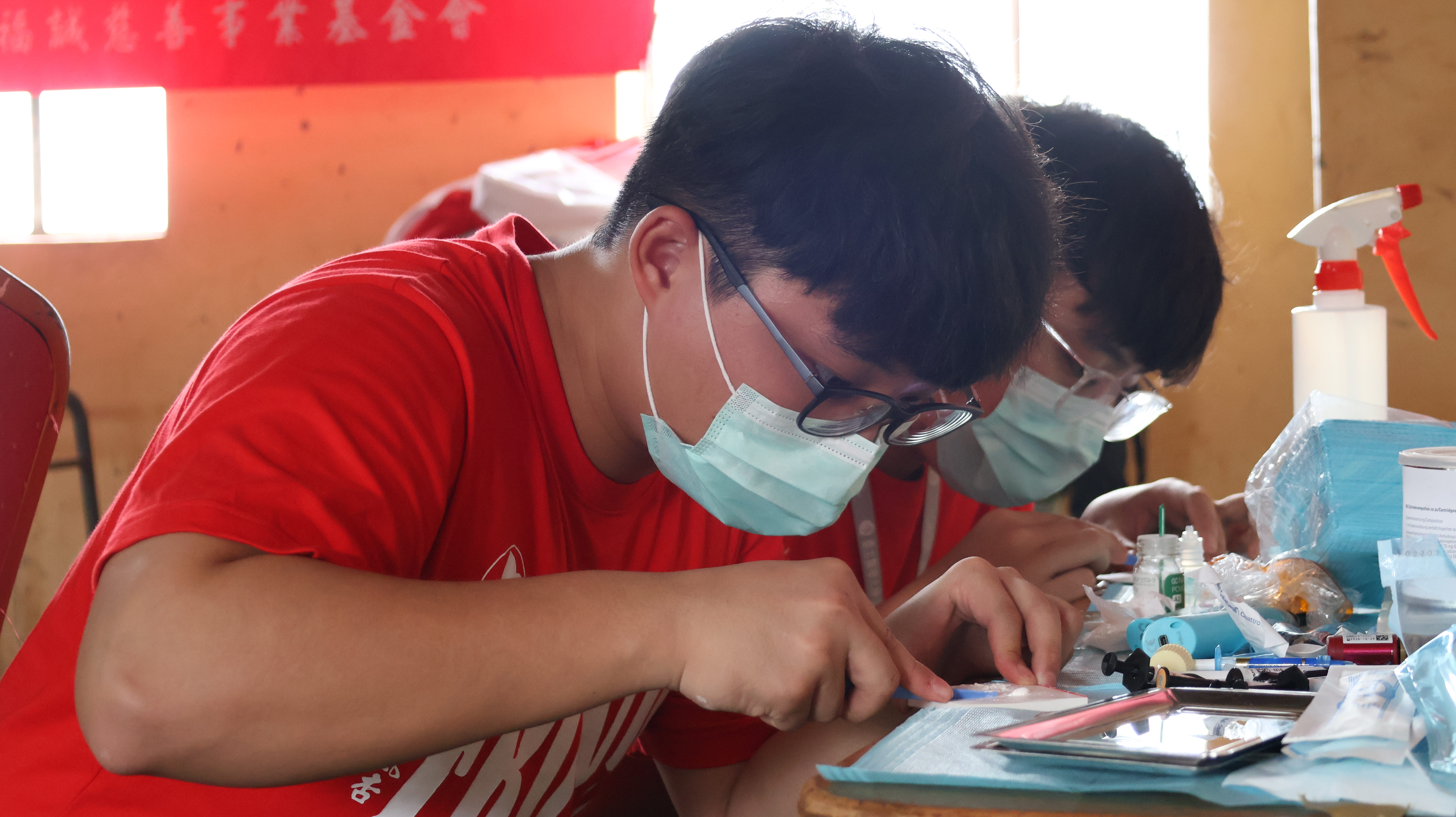 隊員鄒育軒,義診時協助牙醫師準備治療材料。(圖2)