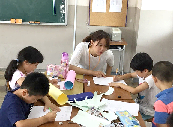 這次服務我覺得很特別的地方是可以將自己曾經的專業派上用場,就是跆拳道,很感謝老師這次給我機會將我的專業教給小朋友們,在出發前很緊張小朋友會不會很排斥不同文化的運動,因為在日本大多數的小朋友是學空手道,但到執行的時候小朋友他們一點也不排斥,反 而會將兩項運動做比較,並將兩項運動融會貫通,即使下課時間他們還會來找我練習,過程中也會看到一些本來比較內向的小朋友外向的一面、自信的一面。在演戲的部分也讓他們接觸到不同的詞彙,雖然他們會覺得很陌生,但他們卻很認真的練習,排練過程中如果有人忘詞,他們還會互相提醒,而給予他們每個人一個角色,這也發揮他們的創造力,因為他們思考自己的角色該怎麼去演,可以加入些什麼聲音或者動作,覺得蠻有趣的,我帶的小朋友主要是一、二年級的小朋友,知道的中文不是很多,所以有時候溝通會有點障礙,但他們也會用他們的方式讓我了解,例如畫圖或者做動作讓我懂。過去的我會認為當國際志工是一定要去較偏鄉或者去較落後的地方,但這次去日本服務讓我明白是不一定的,過程中一樣可以和小朋友做交流,但會發現小朋友的想法或態度會是不同的,透過去更先進的國家也會知道自己還有很大的進步空間,使得自己會更想努力將自己所學學好,所以真的很感謝能擁有這次機會至日本服務,也讓我擁有不一樣的暑假回憶。