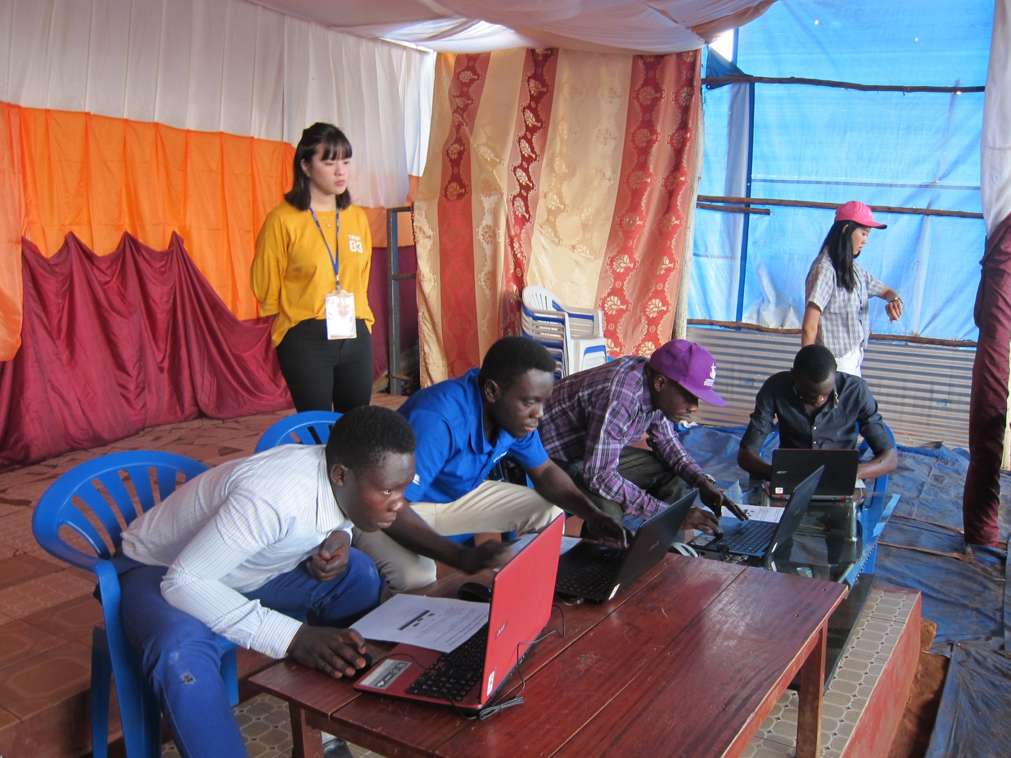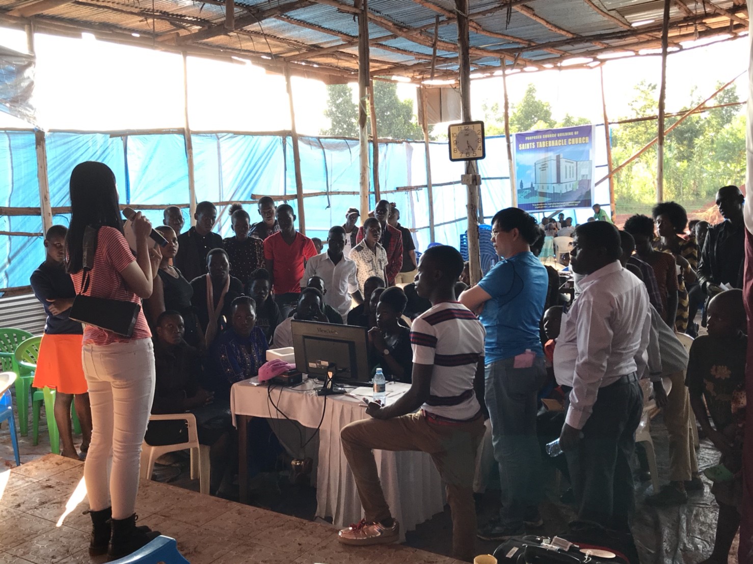 聖會幕教會(Kampala - Saint Tabernacle Church)電腦班,前面講台站立者為學生團員陳昱心。