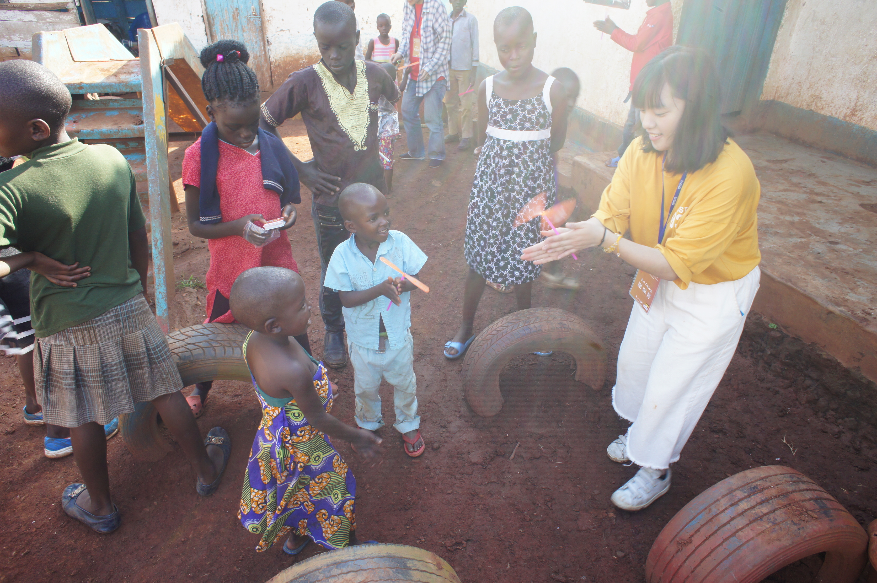 2.在一天的課程結束後,發給小朋友們竹蜻蜓,他們在玩竹蜻蜓的時候都會一直叫teacher、teacher,希望我可以教他們怎麼玩,眼神裡充滿笑容,原來一隻竹蜻蜓也可以讓人這麼幸福。