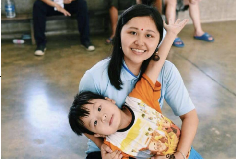 (您的瀏覽器不支援JavaScript語法),全文為:前跳躍式復健,我從背後撐著她的手臂穩住他上半身的重心,陪著她一步步向前行走,我感受到她對復健這件事的不樂意,但當我扶起她開始復健時她並不排斥,也許她知道就算過程很痛很累很辛苦,但這是讓身體健康的必經之路,再累也要咬著牙關撐過去,所以她願意接受我的幫助。經過數天的努力,我與她變得更加熟稔了,她是我每天去服務的動力,陪她丟球看著她笑,陪她復健看著她進步,陪她吃飯看著她滿足的笑容,生活就是這麼簡單,服務她的同時我也在學習,學習她對生活的態度進而反思自我。還記得最後一天服務時,我光看著她眼淚就溢出來了,心中充滿著不捨的離別之情,我想她也知道又有國際志工要離開了,這個常對我笑的小女生要回去自己的國家了,她在我離開前送了我一個像是祝福的臺灣手語,簡單的動作中我感受到她滿滿的情意,每當我想起在印度的日子時,這個畫面也隨之浮現腦中,這是我印象最深刻的畫面。「志工的進場就是在等待退場」,或許我們是他人生中的過客,但他是我回憶中的常客。