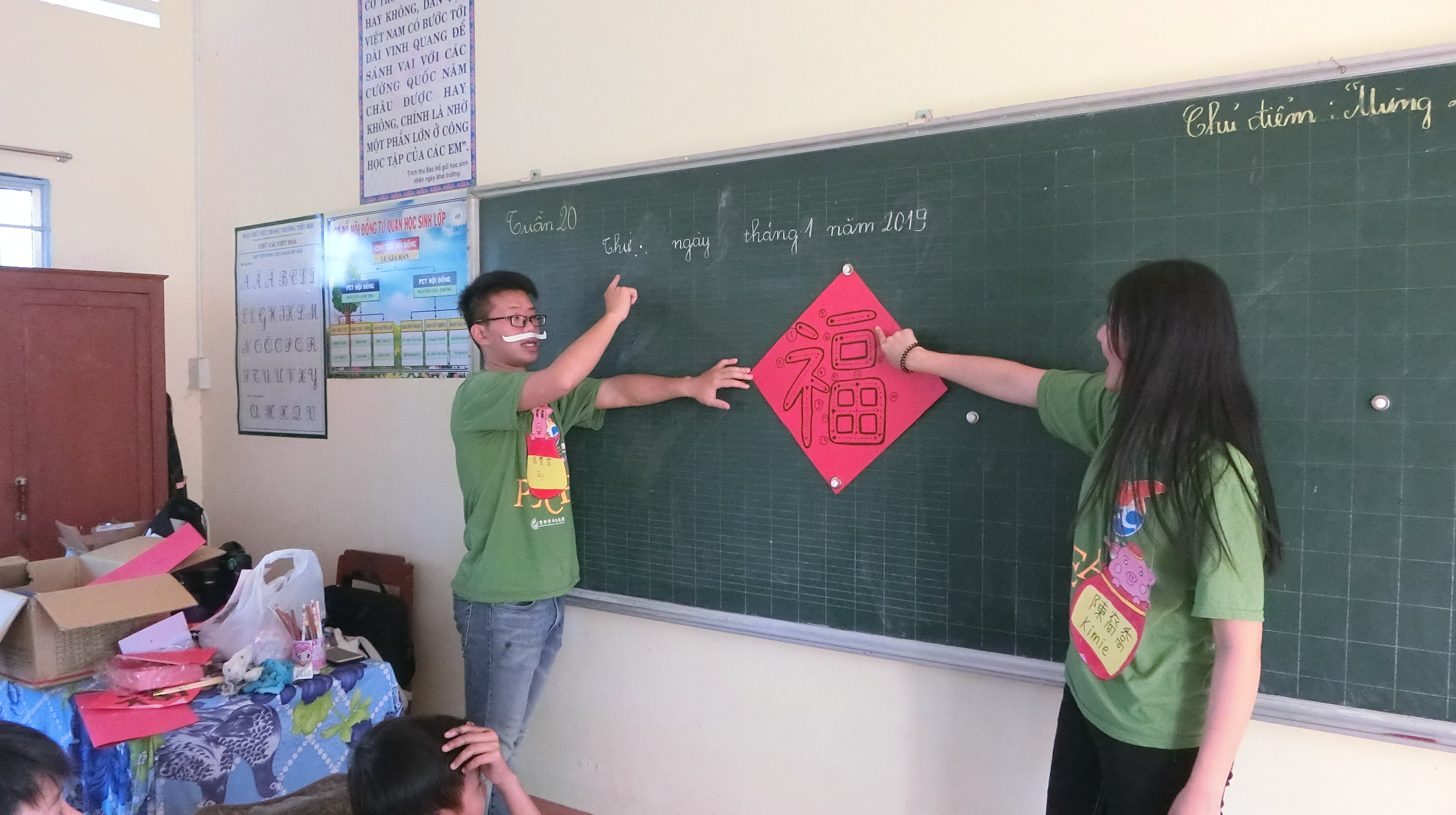 教孩子寫春聯,左張豐傑右陳裔喬