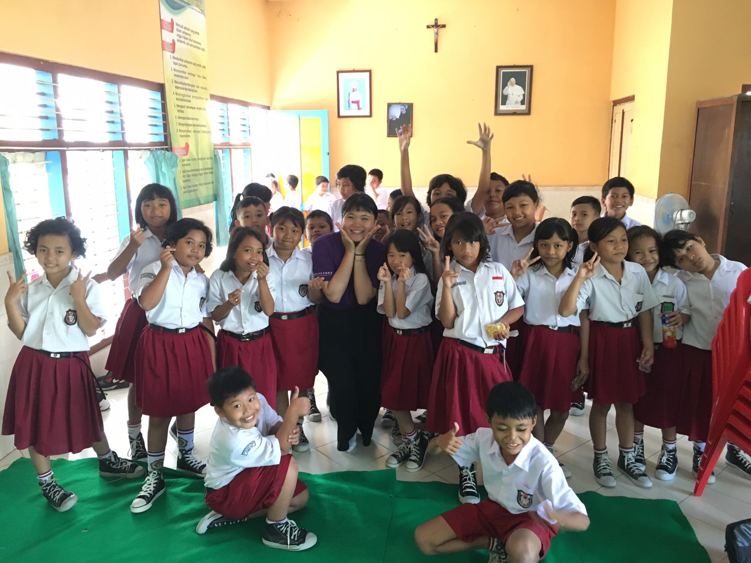 在我們服務將近一個月裡,發生了蠻多充滿歡笑及淚水的回憶。從一開始恐慌期,因為不知道自己準備的是否足夠兒窮緊張,到踏進印尼後的適應期,包括寄宿家庭、語言溝通、飲食文化等等到我們人生永遠都學不會的課題—離別。 不得不說我們真的很幸運的其 中幾個小故事過程,分別是遇到印尼國慶日、童軍節及寄宿爸爸的生日。印尼國慶日的熱鬧及那種妳就是焦點的氣氛自己真的第一次見識到,在印尼市中心這塊土地人口至少達上千名,在國慶日前有被受邀參加樂隊表演,名稱聽起來就感覺已經很正式,再加上我們是外國臉孔,當然視線難免都會聚焦在我們的身上,但觀眾們的氣場強到我真的都不敢直視,我覺得這是一個能夠讓自調整好自己的台風跟儀態的一項有意義的活動,不管是在台上表演及社交方面;再來是童軍節的表演,從早上的繞街到晚上的營火,足以讓我們身心俱疲但倍感榮耀,還記得為了童軍節我們特地去買了印尼當地特有服飾來融入這個活動,參與活動過程中,我深深感受到他們純樸及快樂,世界上最幸福的事就是看到大家的笑容,在印尼這裡,不管是小朋友及老師都是一個比一個還樂在其中,我想這就是所謂的幸福吧!問我在童軍節學到了什麼,不免俗的是常聽到的知足,說起來容易做起來難,與其說是我們帶給他們什麼,不如說是他們送給我們什麼;接下是寄宿爸爸的生日,文字上聽起來真的沒什麼不就是一個小小的生日嗎,但這是我們第一次幫爸爸過生日,心酸的是大家心中都明白不敢保證慶生這種事是不是最後一次,其實當下的自己是悲傷大於難過,這次的慶祝也讓我想起在台灣的爸媽,省思到誰不需要被陪伴,小小的慶生會足以讓我更懂得何謂親情何謂珍惜。 最後來到我們的重頭戲也是我們此次來的目的,教導小朋友洗手的衛生觀念及急救六部曲-叫叫CABD,做了這麼多次的志工經驗,再次並且更深深感受到我們是多被看重及需要,我的學習欲望遠遠不如他們,從小朋友身上我學習到每次得來不易的機會應該要有多珍惜多積極,很快的我們教導他們三個禮拜就要道別,難分難捨的劇情沒有,但落寞感直接爆表,不用小朋友不捨的眼淚足以讓我直接一秒哭泣,在台灣我本來就不是一個輕易表露情感的人,就說明了,他們對我來說有多重要,唯一讓我感到遺憾的事是,自己沒辦法用最真摯的笑容來回應他們天真說的每一句再見,所以我想祈禱自己未來有能力及有時間,一定要回來跟他們再相見。 [ 詳全文 ][ 收起 ] (您的瀏覽器不支援JavaScript語法),全文為:中幾個小故事過程,分別是遇到印尼國慶日、童軍節及寄宿爸爸的生日。印尼國慶日的熱鬧及那種妳就是焦點的氣氛自己真的第一次見識到,在印尼市中心這塊土地人口至少達上千名,在國慶日前有被受邀參加樂隊表演,名稱聽起來就感覺已經很正式,再加上我們是外國臉孔,當然視線難免都會聚焦在我們的身上,但觀眾們的氣場強到我真的都不敢直視,我覺得這是一個能夠讓自調整好自己的台風跟儀態的一項有意義的活動,不管是在台上表演及社交方面;再來是童軍節的表演,從早上的繞街到晚上的營火,足以讓我們身心俱疲但倍感榮耀,還記得為了童軍節我們特地去買了印尼當地特有服飾來融入這個活動,參與活動過程中,我深深感受到他們純樸及快樂,世界上最幸福的事就是看到大家的笑容,在印尼這裡,不管是小朋友及老師都是一個比一個還樂在其中,我想這就是所謂的幸福吧!問我在童軍節學到了什麼,不免俗的是常聽到的知足,說起來容易做起來難,與其說是我們帶給他們什麼,不如說是他們送給我們什麼;接下是寄宿爸爸的生日,文字上聽起來真的沒什麼不就是一個小小的生日嗎,但這是我們第一次幫爸爸過生日,心酸的是大家心中都明白不敢保證慶生這種事是不是最後一次,其實當下的自己是悲傷大於難過,這次的慶祝也讓我想起在台灣的爸媽,省思到誰不需要被陪伴,小小的慶生會足以讓我更懂得何謂親情何謂珍惜。 最後來到我們的重頭戲也是我們此次來的目的,教導小朋友洗手的衛生觀念及急救六部曲-叫叫CABD,做了這麼多次的志工經驗,再次並且更深深感受到我們是多被看重及需要,我的學習欲望遠遠不如他們,從小朋友身上我學習到每次得來不易的機會應該要有多珍惜多積極,很快的我們教導他們三個禮拜就要道別,難分難捨的劇情沒有,但落寞感直接爆表,不用小朋友不捨的眼淚足以讓我直接一秒哭泣,在台灣我本來就不是一個輕易表露情感的人,就說明了,他們對我來說有多重要,唯一讓我感到遺憾的事是,自己沒辦法用最真摯的笑容來回應他們天真說的每一句再見,所以我想祈禱自己未來有能力及有時間,一定要回來跟他們再相見。