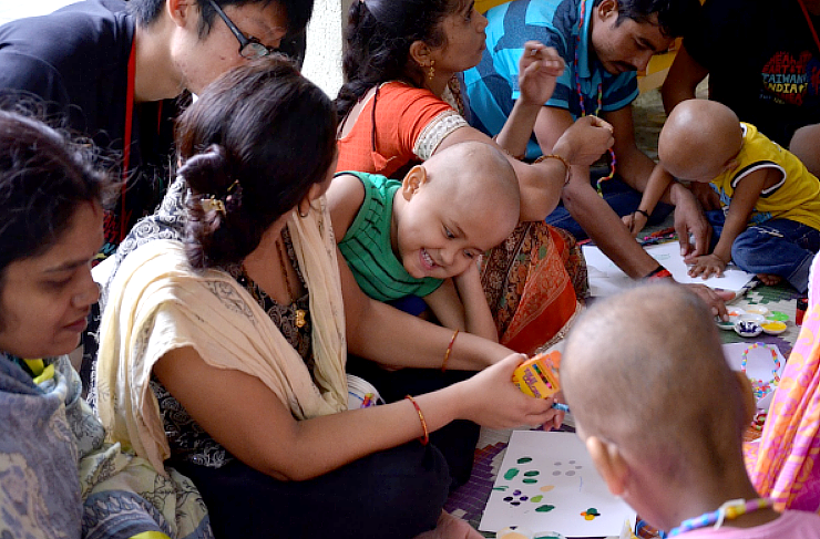 指印畫課程中,ACCESS LIFE 的孩童興高采烈地和媽媽一起完成作品