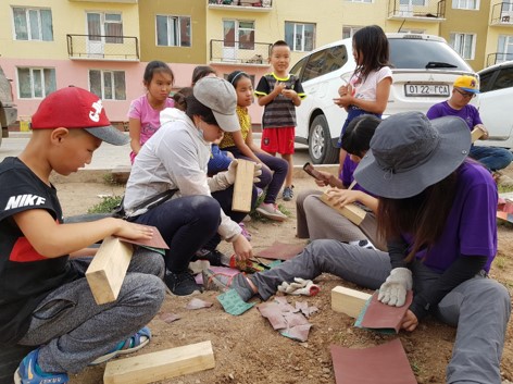 在整個服務過程中,最感動的是看到許多願意無償付出,極力促成這次遊戲場建置的蒙古當地市府官員、當地居民以及小孩們。從他們身上可以感受到對環境改善的渴望,以及對小朋友健康成長環境建構的支持。第一天班機延誤四小時抵達蒙古,當出機場已是晚上 9 點 ,當時氣溫已達攝氏 10 度以下,與我們合作的蒙古喬伊爾市府人員 Ally 小姐以及促成此行的蒙古健康城市主席 Dr. Tserendulam 仍熱情的親自蒞臨接待,並一路開了 6 小時的夜車抵達我們基地所在的喬伊爾市,即使入住宿舍已是凌晨 3 點,隔日的行程接待仍如期進行。且由於當地語言不通的原因,Ally 小姐每天都會到我們施作的基地了解進度及協助處理我們碰到的任何問題。甚至最後兩天仍和我們一起回到烏蘭巴托直到送我們上飛機,整個行程幾乎一路相伴,真的讓人非常感動!在我們遊戲場建置的過程中,當地居民及小孩們也提供我們非常多的協助,印象最深刻的就是 Uka 小姐以及 Dorjj 先生。Uka 小姐是協助我們處理溝通的中文翻譯,並在施工過程較忙碌的一週協助準備團員們的伙食,甚至在服務的空檔,熱心的導覽當地環境及帶我們體驗當地生活。Dorjj 先生則積極的每天早上都開著車來到基地,協助處理施工時所需的用水、用電問題,收工後也協助我們收拾水電設施,真的是多虧 Dorjj 先生的協助,我們才能在為期 10天左右的時間內順利將工程結束。最後我非常感謝每天來陪伴我們的小孩們,當我們在努力工作時,他們總會跑來和我們打招呼、分享自己的零食或小禮物,甚至會主動一起幫忙完成他們未來的遊戲場!雖然大部分的時間,小孩們都在我們旁邊玩耍,但他們的這些舉動,讓我們重新看到小孩最純真、可愛的一面,相信這也是我此行來蒙古服務收穫最多也最感動的事情了!