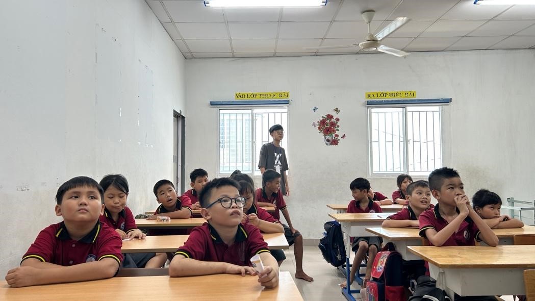在國小機構中認真聽課的孩子們